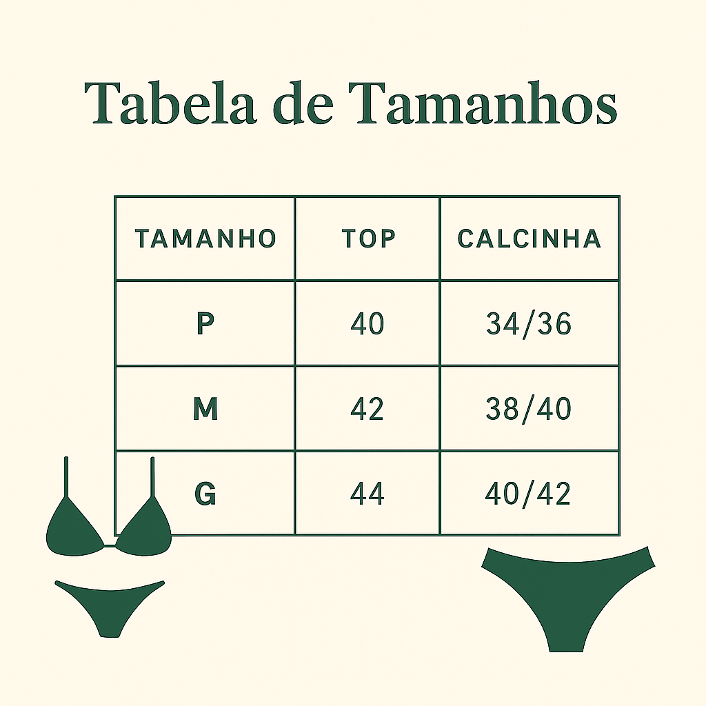 - Importante: Por se tratar de uma peça íntima com corte cavado, não realizamos trocas ou devoluções em caso de engano. Recomendamos verificar atentamente a tabela de tamanhos disponível nas imagens do produto antes da compra.